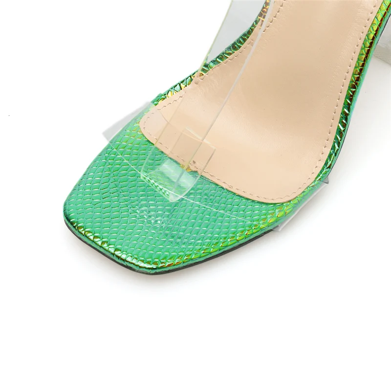 Mega Deal 2020 Summer Women 9.5cm High Heels Valentine Green Transparent Sandals Platform Fetish Gladiator St